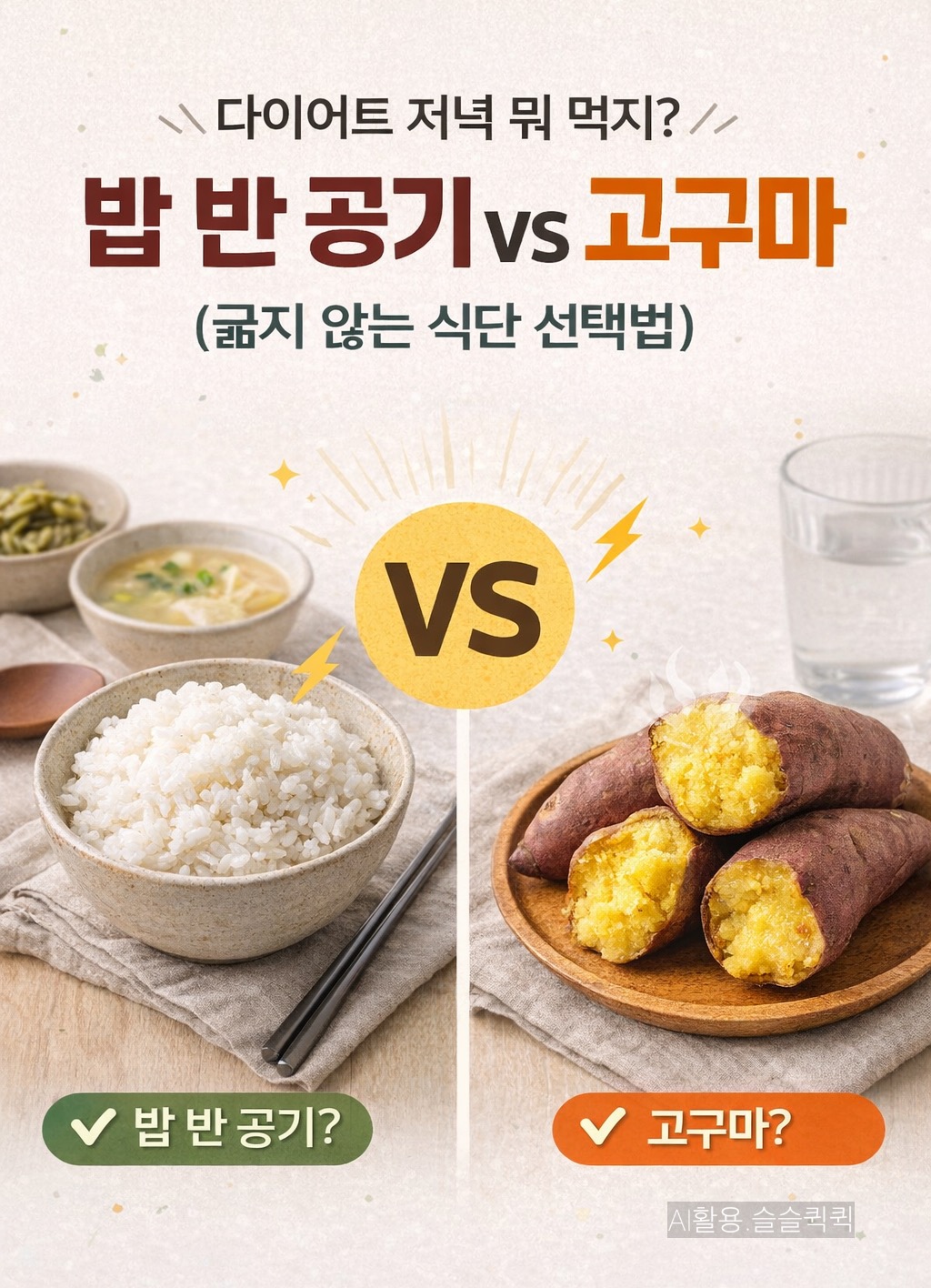 밥 반 공기 먹을까? 아니면 고구마로 버틸까?